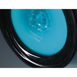 in vetro incamiciato nei toni del turchese e applicazioni in pasta vitrea nei toni del nero