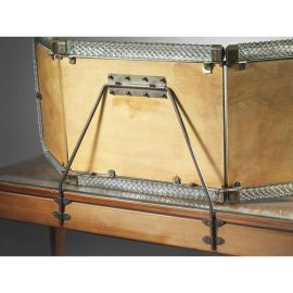 TABLE MIRROR WITH THREE DOORS AND A WOODEN CONSOLLE