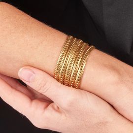 in oro giallo 18kt, composto da cinque catene a maglia piatta, punzoni 750 e del fabbricante, lungh. cm 19, gr. 55