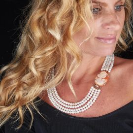 PEARL NECKLACE WITH CAMEO ON SHELL
