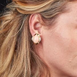 CORAL AND DIAMOND CLIP EARRINGS IN 18KT YELLOW GOLD