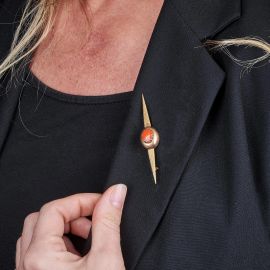 CORAL BARRETTE BROOCH IN GOLD