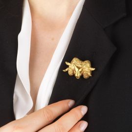 RAM'S HEAD-SHAPED BROOCH IN 18KT GOLD