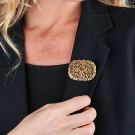 OPENWORK GARNET BROOCH IN 18KT GOLD