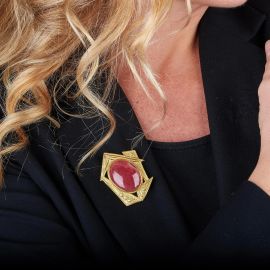 SEMIPRECIOUS STONE AND DIAMOND BROOCH IN 18KT TELLOW GOLD