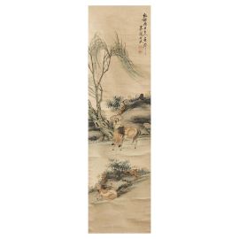 中国 二十世纪 人物骏马图一组两件 尺幅118x32,6厘米