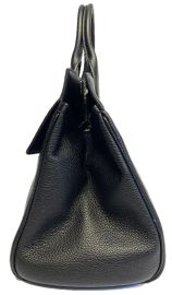 Black grained leather bag with removable shoulder strap and studded feet, large internal removable clutch bag with zip fastened with a golden metal "hook", h 29 cm, length 36 cm and depth 18 cm
