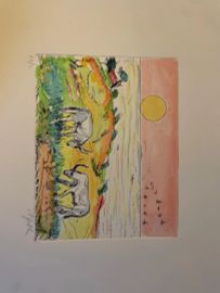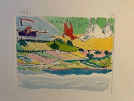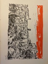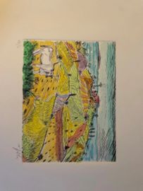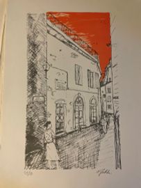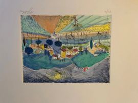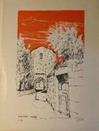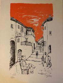 Lot of 5 watercolor engravings depicting Monte Argentario by the painter Alfredo Fabbri; 11 original lithographs depicting Sorano by the painter Alfredo Fabbri and a photolithograph from the watercolor by Luciano Guarnieri depicting Palazzo Spini Feroni