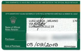 cassa in acciaio, fondello serrato a vite, corona marcata, ghiera in acciaio con inserto "Pepsi" in ceramica, grafica bianca, quadrante nero con bicchierini al superluminova, datario a ore tre con lente cyclope, movimento a carica automatica, bracciale jubilee in acciaio, lungh. interna cm 20, cod. produzione 7YK, chiusura a scatoletta marcata Rolex, vetro minerale. Diam. mm 40. Corredato di scatola, controscatola, garanzia e libretto.