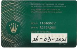 ROLEX MILGAUSS REF. 116400GV N. R279A0XX ANNO 2021