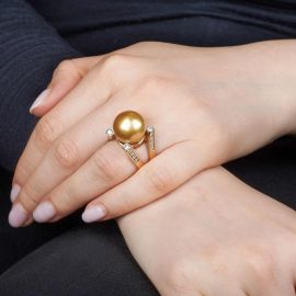 BIG GOLD PEARL AND DIAMOND RING IN 18KT YELLOW GOLD