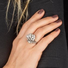in oro bianco 18kt, impreziosito da diamanti taglio brillante, baguette e tapes per ct 3.50 circa, mis. 12/52, gr. 7