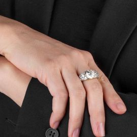 in oro giallo 18kt in parte rodiato, impreziosito al centro da un diamante taglio cuore di ct 3 circa affiancato da diamanti taglio brillante per ct 1.30 circa, punzone 750, mis. 22/62, gr. 9