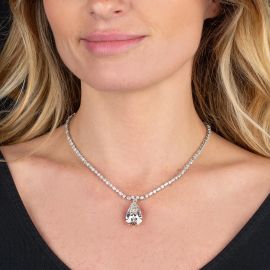 in oro bianco 18kt, impreziosita da una fila di diamanti taglio navette e brillante per ct 9.50 circa, da cui pende un diamante taglio a goccia (smontato) di ct 14.96, colore H, purezza Vvs1, punzoni 750 e del fabbricante "1110 AL", lungh. cm 41, dim. pendente cm 1,5x2,5, gr. 22. Corredata di certificato GIA del 19/04/2024 attestante le caratteristiche del diamante.