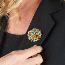 SPILLA FLOREALE CON SMERALDI E DIAMANTI