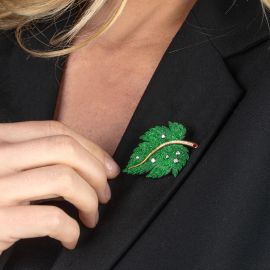 ENGLICH & WAGNER LEAF BROOCH IN UVAROVITE AND 18KT TWO TONE GOLD