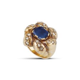 ANELLO A FORMA DI FIORE CON ZAFFIRO KASHMIR E DIAMANTI