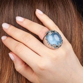 PASQUALE BRUNI GRANDE ANELLO CON ACQUAMARINA E DIAMANTI