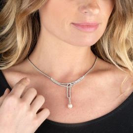 PEARL AND DIAMOND NECKLACE IN 18KT WHITE GOLD