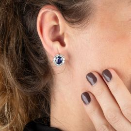 SAPPHIRE AND DIAMOND EARRINGS IN 18KT WHITE GOLD