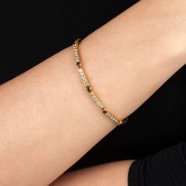 in oro giallo 18kt, impreziosito da una fila di diamanti taglio brillante (uno mancante) per ct 1.90 circa, alternati a zaffiri taglio cabochon per ct 0.70 circa, firmato "VCA", punzone francese, del fabbricante e n. seriale, lungh. cm 17,5, gr. 13
