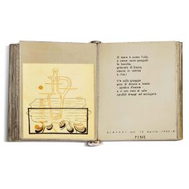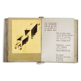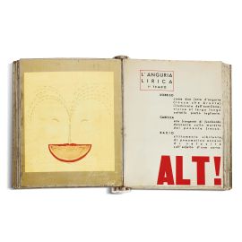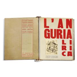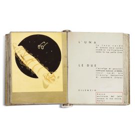 I edition, printed on 21 aluminium sheets, Diulgheroff b/n portrait, preface by Filippo Tommaso Marinetti and 11 colored lithographs by Bruno Munari, edited metal binding with cylinder spine