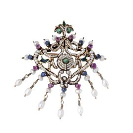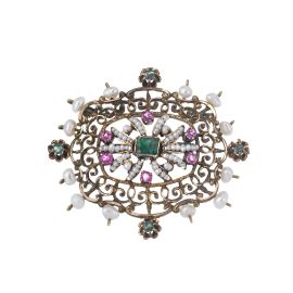 GERARDO SACCO DUE SPILLE CON PERLE E PIETRE DI COLORE