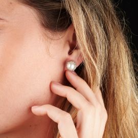 PEARL AND DIAMOND SCREWBACK EARRINGS IN 18KT WHITE GOLD