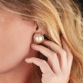 MABE PEARL EARRINGS IN 18KT TWO TONE GOLD