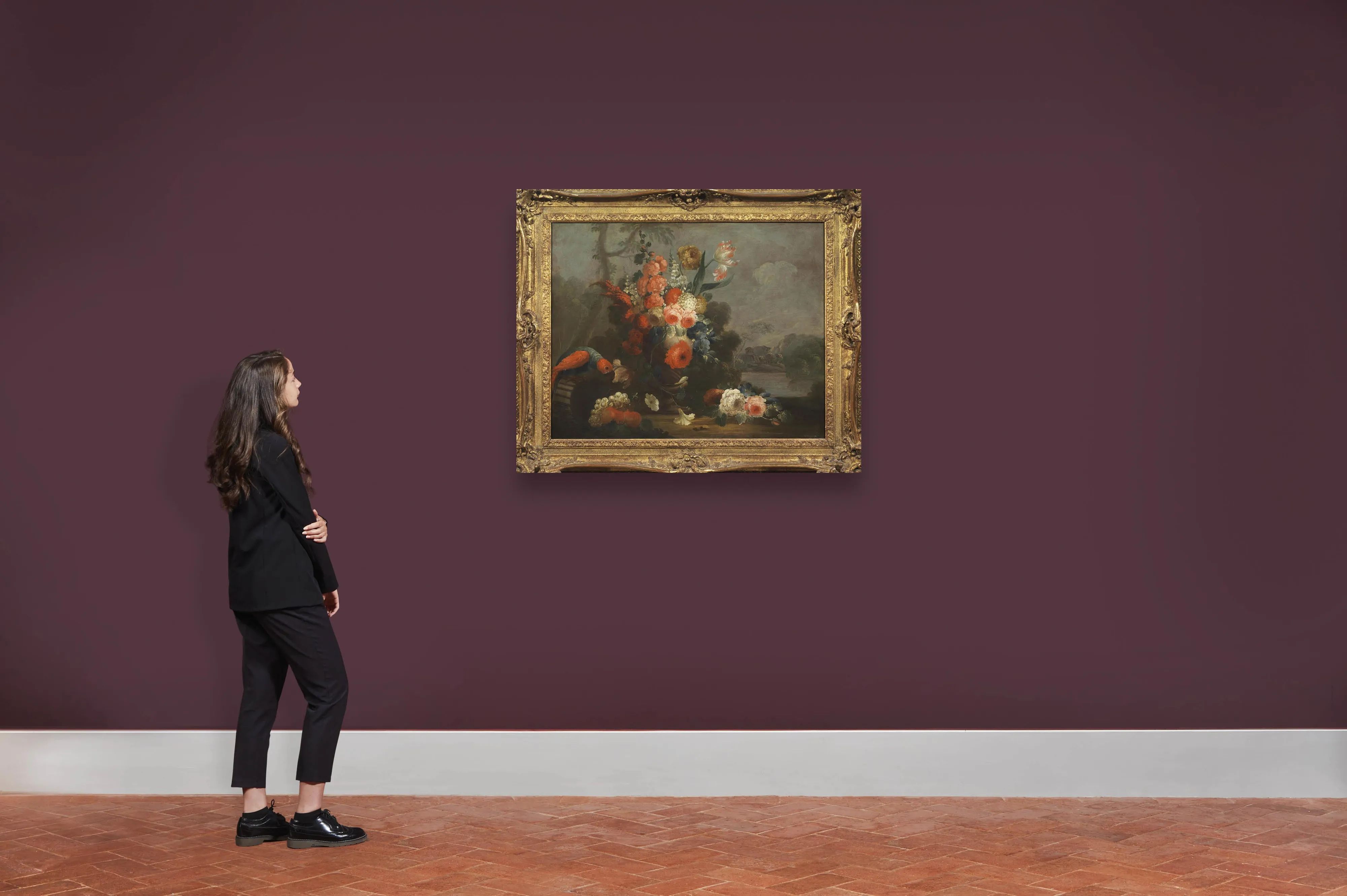FLOWERS AND A PARROT ON A LANDSCAPE