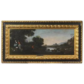PAESAGGIO FLUVIALE CON FIGURE E ANIMALI
