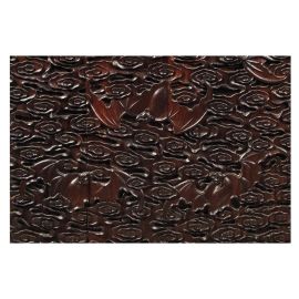 in legno duro con lucchetto in bronzo, entrambi intagliati con pipistrelli che volano tra le nuvole.