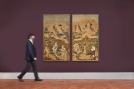 清 十九世纪 人物故事图一组两件 纸本坦培拉 尺幅 163,5x91厘米