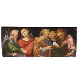 (nei laterali) olio su tavola, cm 176x61,5 ciascuno