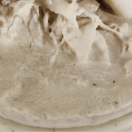 scultura in marmo bianco, firmata alla base D. Barcaglia, cm 97x24x26