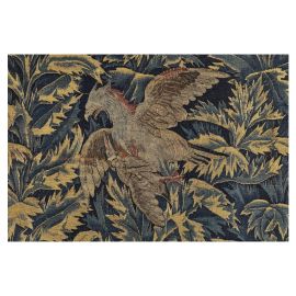 tessuto in lana e seta su un ordito di lino, due leoni reali e altri sedici animali, tra conigli, uccelli e farfalle, spuntano tra il ricco fogliame sullo sfondo a feuilles de choux; bordura a grottesche a incorniciare la composizione, cm 360x532