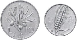 REPUBBLICA ITALIANA. DUE MONETE (10 LIRE E 2 LIRE 1946)
