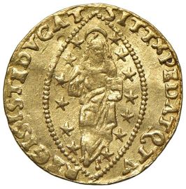 Au gr.3,43 S. Marco nimbato, stante a s., porge il vessillo al Doge genuflesso R/ Il Redentore entro un’aureola ellittica stellata. Mont. 556 Fr. 1257