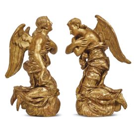 Genoese sculptor, early 18th century, a pair of genuflected angles, gilt wood
