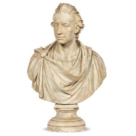 Il romano Innocenzo Spinazzi si trasferì a Firenze nel 1770 quando, ormai quasi quarantacinquenne, aveva alle spalle una carriera di specialista nel restauro dell’Antico grazie all’impiego come aiuto nella bottega di Bartolomeo Cavaceppi, il più stimato restauratore del pieno Settecento, contattato dalla corte dei Lorena per andare a ricoprire il ruolo di scultore di corte a Firenze. Pur occupandosi soprattutto del restauro delle antichità delle collezioni medicee, Spinazzi eseguì numerosi ritratti in marmo a Firenze, e questo di Busto di Pietro Leopoldo di Asburgo Lorena è un’altra versione autografa di quello conservato in Palazzo Pitti. Sappiamo che già nel 1770 Spinazzi aveva presentato al conte Orsini di Rosemberg un busto di gesso rappresentante il ritratto di S.A.R. “per sentirne l’approvazione”. La fortuna riscossa dal ritratto di Pietro Leopoldo è attestata dall’esistenza di altre redazioni in stucco e gesso, con finiture diverse, certamente pensate per il collezionismo privato fiorentino. La Gazzetta Toscana del luglio 1773 sottolineava come il busto fosse “fatto all’uso dei busti degli antichi imperatori”.