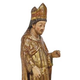 Spanish carver, late 15th century, Saint bishop, polychromed and golden wood