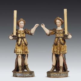 Tuscan sculptor, half 16th century, A pair of holding Angels, wood