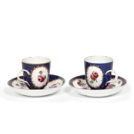 A PAIR OF GINORI STEMMED CUPS WITH SAUCER, DOCCIA, LAST QUARTER 18TH CENTURY