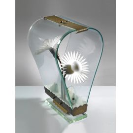 TABLE LAMP, BRASS STRUCTURE, GLASS LAMPSHADE