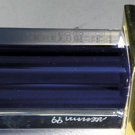 in vetro nei toni del bianco e del blu, dettagli in ottone