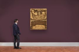 mixed media on canvas (fabric, embroided, golden acrylic)