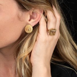 CLIP EARRINGS WITH A RING IN 18KT YELLOW GOLD