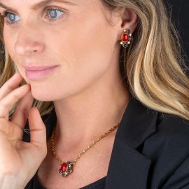 CORAL SAPPHIRE AND DIAMOND DEMI PARURE IN 18KT YELLOW GOLD