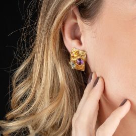 MULTI GEM CLIP EARRINGS IN 18KT YELLOW GOLD