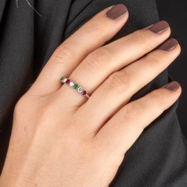 in oro 9kt, impreziosito da rubini e smeraldi taglio rotondo per ct 0.40 circa e diamanti taglio brillante per ct 0.30 circa, mis. 22/62, gr. 2 circa